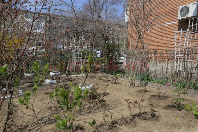 Frumuseţe, culoare, mireasmă de primăvară. Sunt cuvintele care îţi vin în minte atunci când priveşti grădina din faţa blocului b8, din cartierul Calea Bucureşti. Este îngrijită de o bătrână de 80 de ani care iubeşte natura. „Locuiesc de 20 de ani aici şi mi-a plăcut întotdeauna să am grijă de grădină. Acum am în ea migdal japonez, un arbust foarte frumos, trandafir japonez, magnolia, zambile, lalele, un gutui japonez, glicinia, care face nişte inflorescenţe albastre, fucsia. Vecinii reacţionează dacă cineva distruge ceva“, a spus doamna Maria, de 80 de ani.