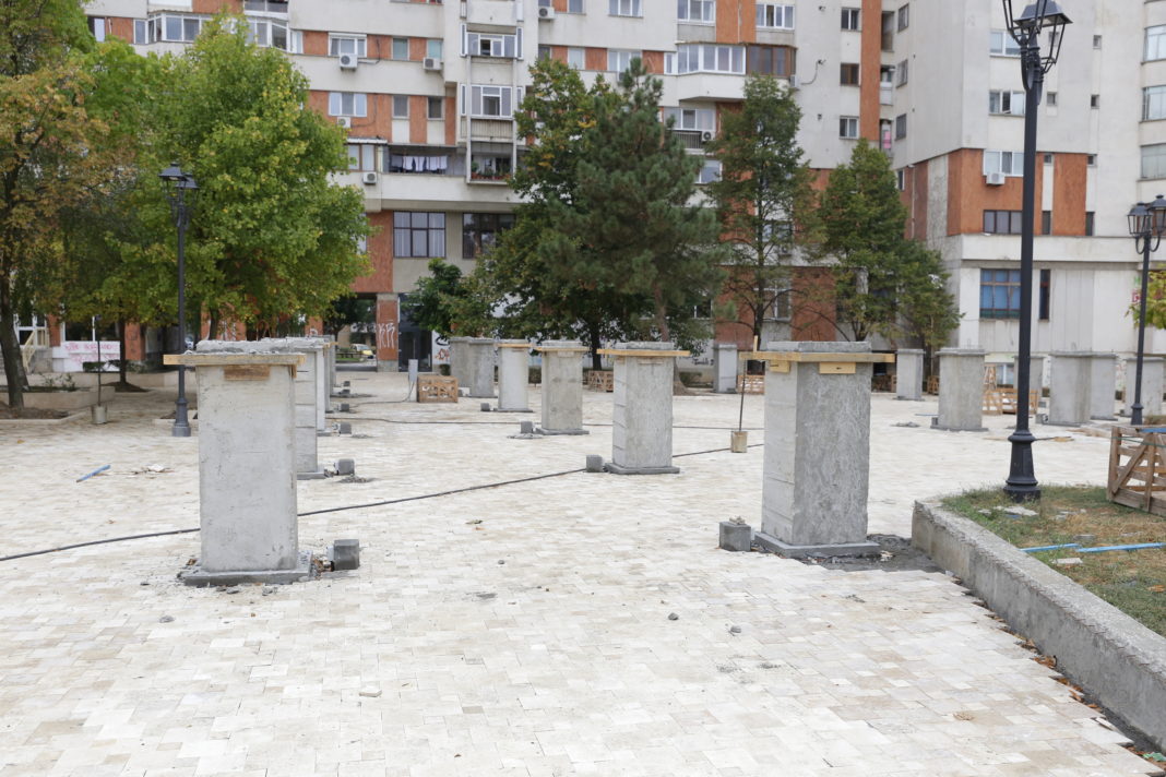 Recent, angajaţii aceleiaşi Regii au turnat soclurile pentru statui. Lucrările merg în paralel cu amenajarea pavimentului şi spaţiilor verzi din piaţeta mărginită de blocuri. Statuile vor fi aşezate pe mai multe rânduri paralele.