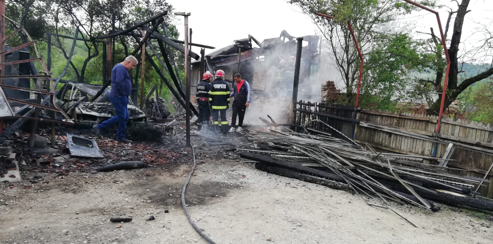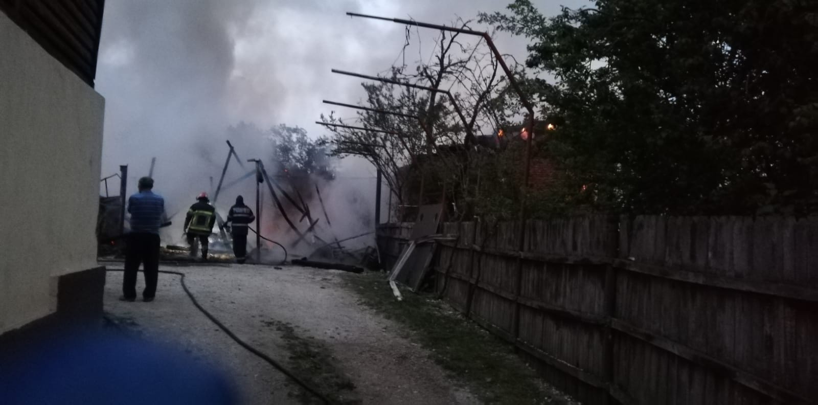 La acesta au ars: Structura a trei garaje în care erau depozitate mai multe bunuri de uz gospodăresc (o barcă pneumatică, un motofierastrau, un autoturism care a ars în totalitate, un adăpost de animale unde a murit un porc în greutate de circa 150 kg., un motocultor, mai multe mașini de găurit depozitate în interior, o lada frigorifică și alte bunuri de uz gospodăresc). Pentru stingerea incendiului, au acționat trei echipaje de stingere cu autospeciale cu apă și spumă și încă un echipaj smurd, pentru acordarea primului ajutor calificat în cazul eventualelor victime. După aproape trei ore de eforturi, pompierii au reușit să stingă incendiul.