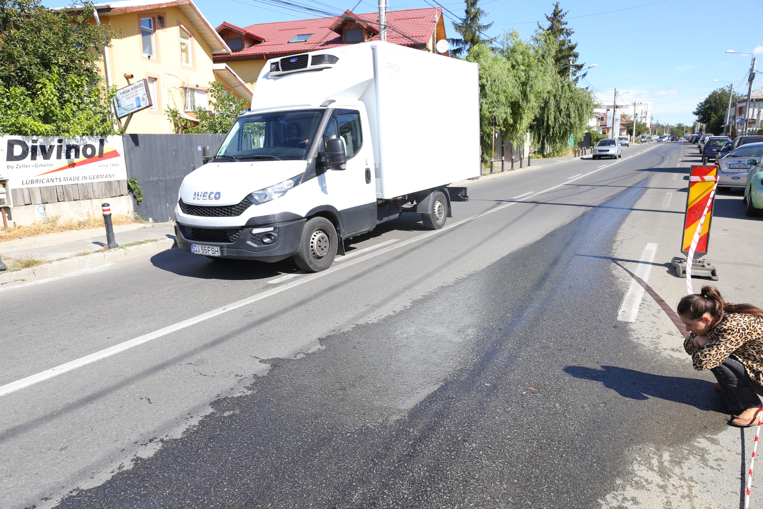 „De aproape două săptămâni este situaţia asta. Iese apă mereu şi începe să curgă pe stradă. Când e traficul mai mare, apa mai este luată pe roţile maşinilor şi se mai împrăştie. Însă, mai ales noaptea, când nu mai circulă maşinile, pur şi simplu apa iese din asfalt şi începe să curgă pe stradă în jos. Am sunat la CAO şi degeaba, nu au făcut nimic. Abia joi de dimineaţă au pus două balize mari aici. Dar pe noi nu ne ajută cu nimic. Pe noi ne interesează să se repare defecţiunea. Pur şi simplu au venit, s-au uitat şi au plecat“, a spus o femeie.