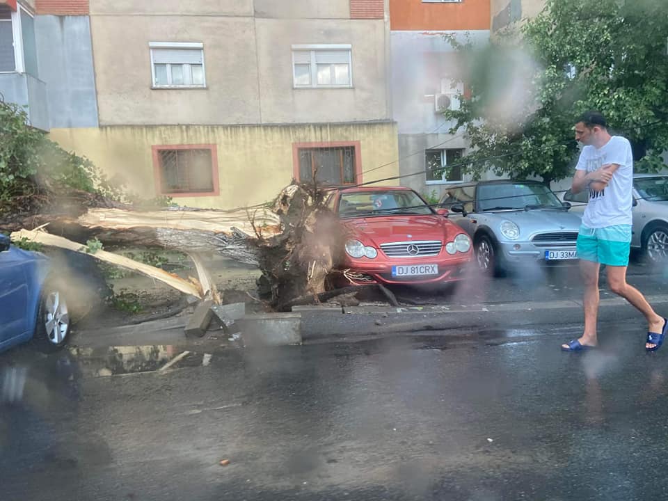 Ce a lăsat în urmă furtuna care a lovit Craiova. A fost prăpăd în Craiova sâmbătă după-amiază, după o ploaie torențială și o vijelie puternică. Străzile municipiului au fost inundate, la fel și pasajele, în timp ce copacii căzuți au făcut pagube materiale.