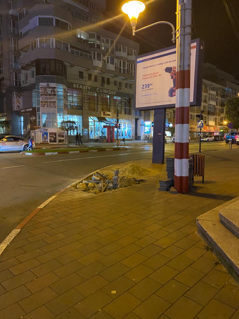 În câteva puncte, muncitorii care lucrează la înlocuirea stâlpilor de troleibuz au abandonat marți seară lucrările, cu tot cu scule și fără să asigure împrejmuiri.