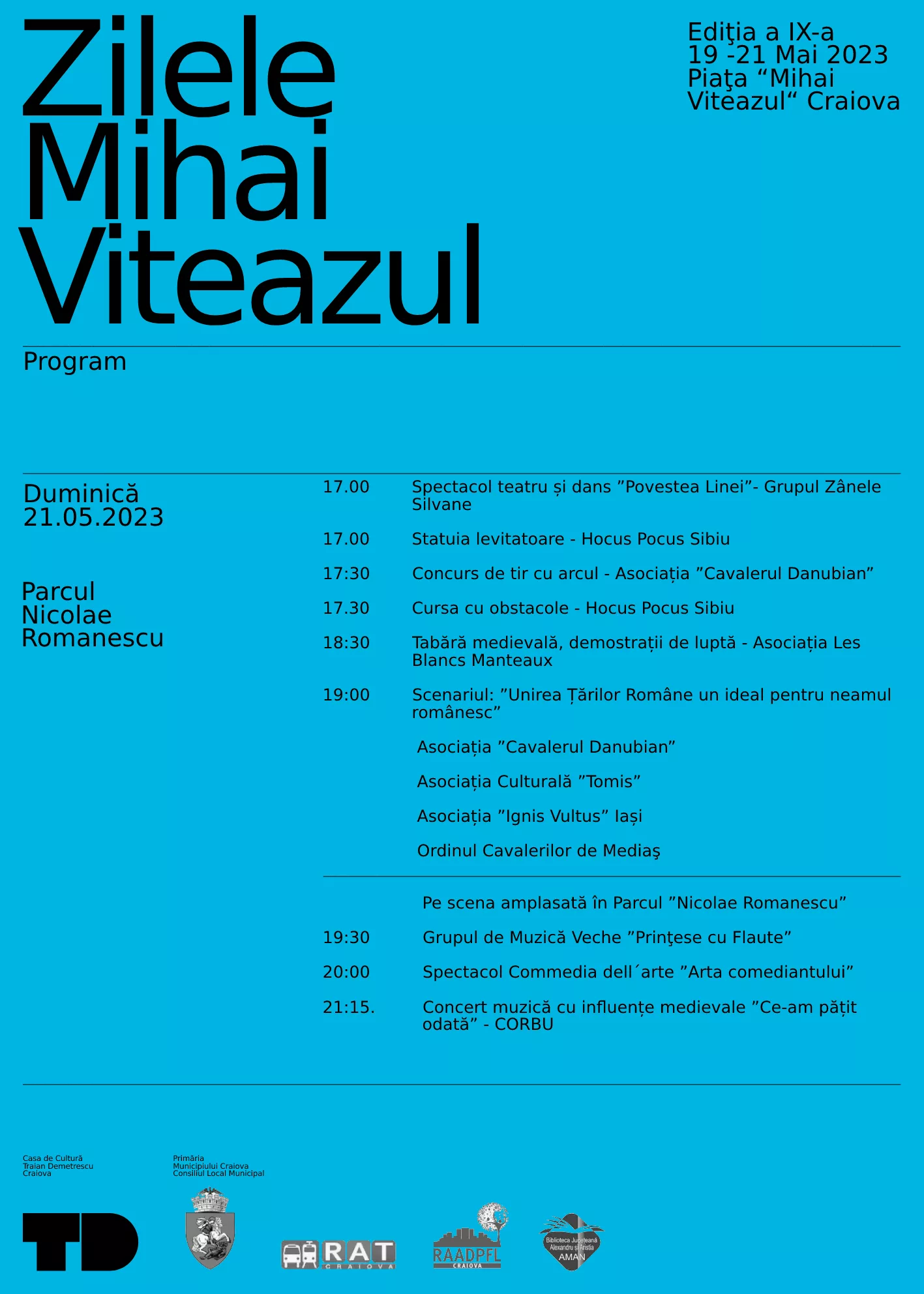 Duminică, 21 mai, se încheie cea de-a noua ediție a festivalului organizat de Casa de Cultură Traian Demetrescu, sub titulatura „Zilele Mihai Viteazul”.