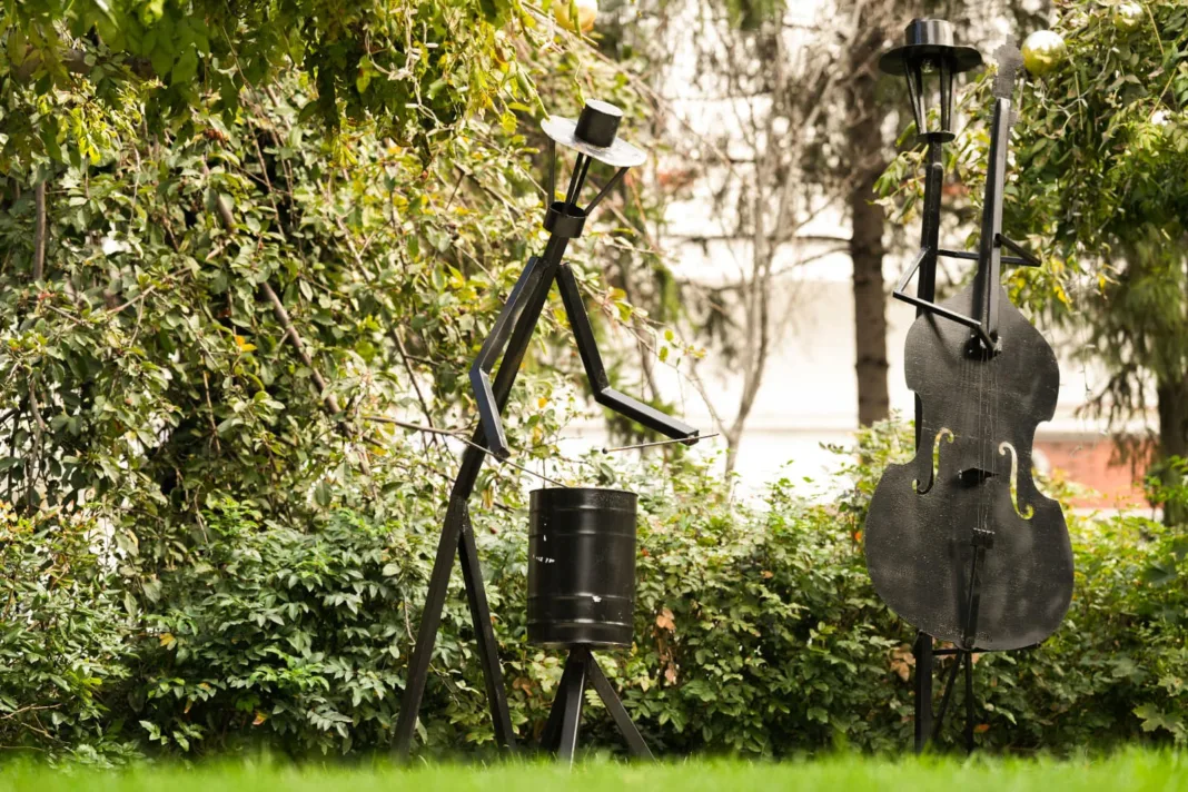 Ca să nu fie stingheri, administraţia locală împreună cu RAADPFL a gândit şi a construit din teavă metalică rectangulară şi alţi stâlpi care cântă. Mult spus, cântă. Aceştia sunt confecţionaţi în aşa fel încât să imite diferiţi instrumentişti. Unul este aşezat în faţa unui pian, imitând un veritabil pianist care atinge clapele unui vechi instrument. Alt stâlp confecţionat din metal imită un instrumentis care ţine în mâini o trompetă, lăsând impresia că în curând începe să curgă o melodie care să te poarte cu gândul la renumitul Louis Armstrong. Orchestra este completată de un contrabasist şi un toboşar. Cei doi ţin isonul celui dintâi, dar nu sunt singurii. Pe o altă alee, un stâlp imită un saxofonist.