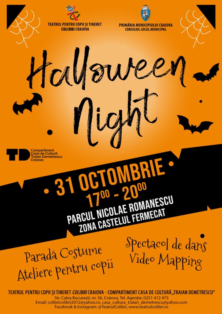 Luna se încheie cu un eveniment spectaculos organizat de Teatrul pentru Copii și Tineret Colibri. Pe 31 octombrie, de la ora 17:00, în zona Castelului Fermecat din Parcul Romanescu, va avea loc o paradă a costumelor de Halloween , urmată de ateliere creative pentru copii . La ora 20:00, spectacolul va culmina cu un show de dans și un impresionant spectacol de video mapping .