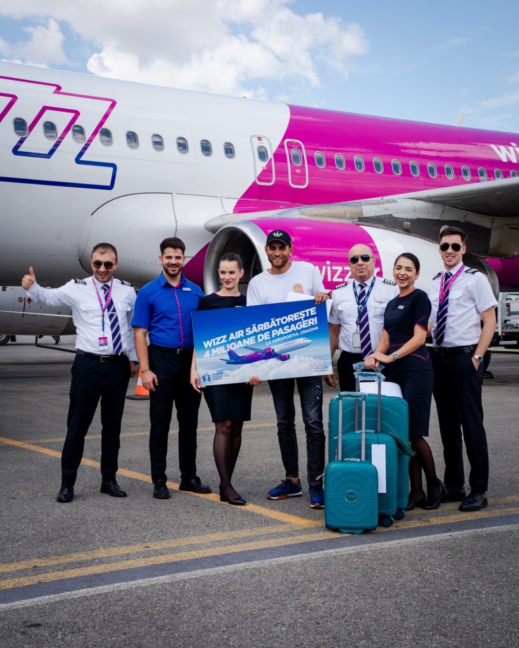 Wizz Air a transportat 4 milioane de pasageri la Craiova. Aeroportul Internațional Craiova a fost, astăzi, gazda unui moment de referință – atingerea bornei de 4 000 000 de pasageri transportați de Wizz Air de la inaugurarea zborurilor.