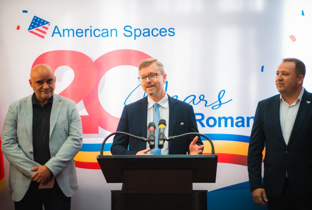 Ambasada SUA a marcat, ieri, la Biblioteca Aman din Craiova a 20-a aniversare a programului American Spaces în România — o bornă importantă care celebrează două decenii de schimburi culturale, colaborare educațională și relație bilaterală durabilă dintre SUA și România. La evenimentul de deschiderea participat Însărcinatul cu afaceri al Ambasadei SUA Michael Dickerson.