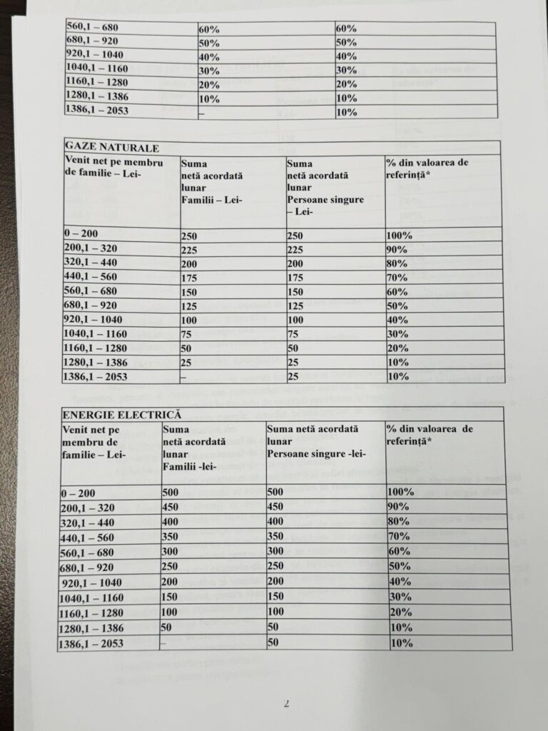Acest ajutor bănesc se acordă lunar, pe tot parcursul anului, inclusiv în perioada sezonului rece, în sumă fixă, în funcție de sursele de furnizare a energiei utilizate, în cuantum maxim de: