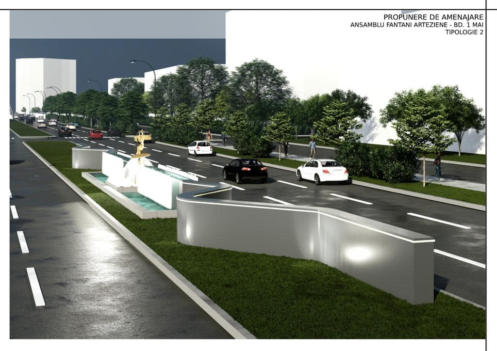Prin intervenţia propusă se va regenera zona 1 Mai, zona cuprinsă între fântâna Ciupercă şi Parcul Nicolae Romanescu, în suprafaţă de 96.021 mp, prin amenajarea unui traseu pietonal în suprafaţă de 16.675,10 m, şi se va revitaliza spaţiul urban din cartierul 1 Mai. O altă componentă importantă este reprezentată de modernizarea fântânii arteziene de la intersecţia 1 Mai cu Ştirbei Vodă (fosta Ciupercă) şi amenajarea unui ansamblu de fântâni decorative şi statui pe linia mediană a bulevardului 1 Mai.