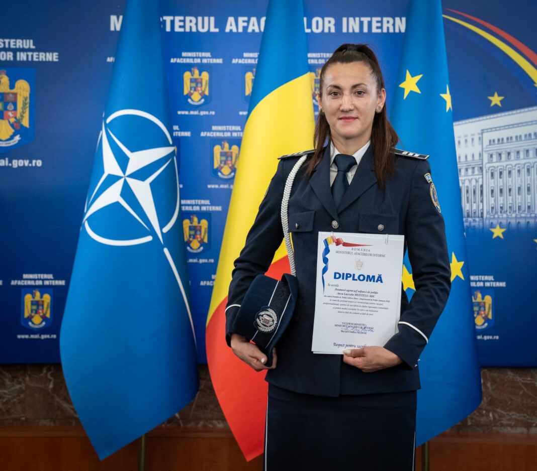 Astăzi, în cadrul unei ceremonii desfășurate la București, polițista Mititelu Mic Anca Lucreția, din cadrul Postului de Poliție Galicea Mare, a fost recompensată de ministrul Afacerilor Interne pentru intervenția sa exemplară, prin care a împiedicat o tragedie și a restabilit ordinea publică.