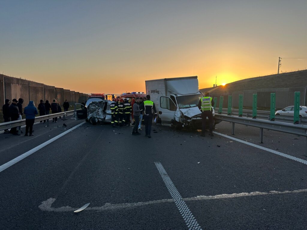 Traficul rutier a fost oprit pe Drumul Expres 12 (DEX 12), pe sensul Craiova – Pitești, după ce un camion de marfă a lovit un autoturism staționat.