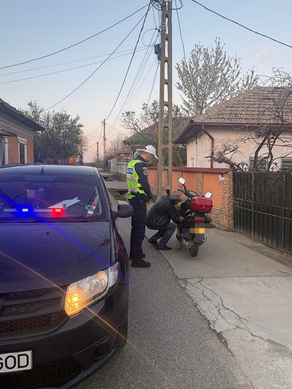 La data de 4 aprilie a.c., polițiștii din cadrul Biroului Rutier au depistat, în trafic, un bărbat de 57 de ani, din localitatea Ostrovu Corbului în timp ce conducea un moped, fără a poseda permis de conducere. Bărbatul a fost testat cu aparatul alcooltest care a indicat 1,04 mg/l alcool în aerul expirat.