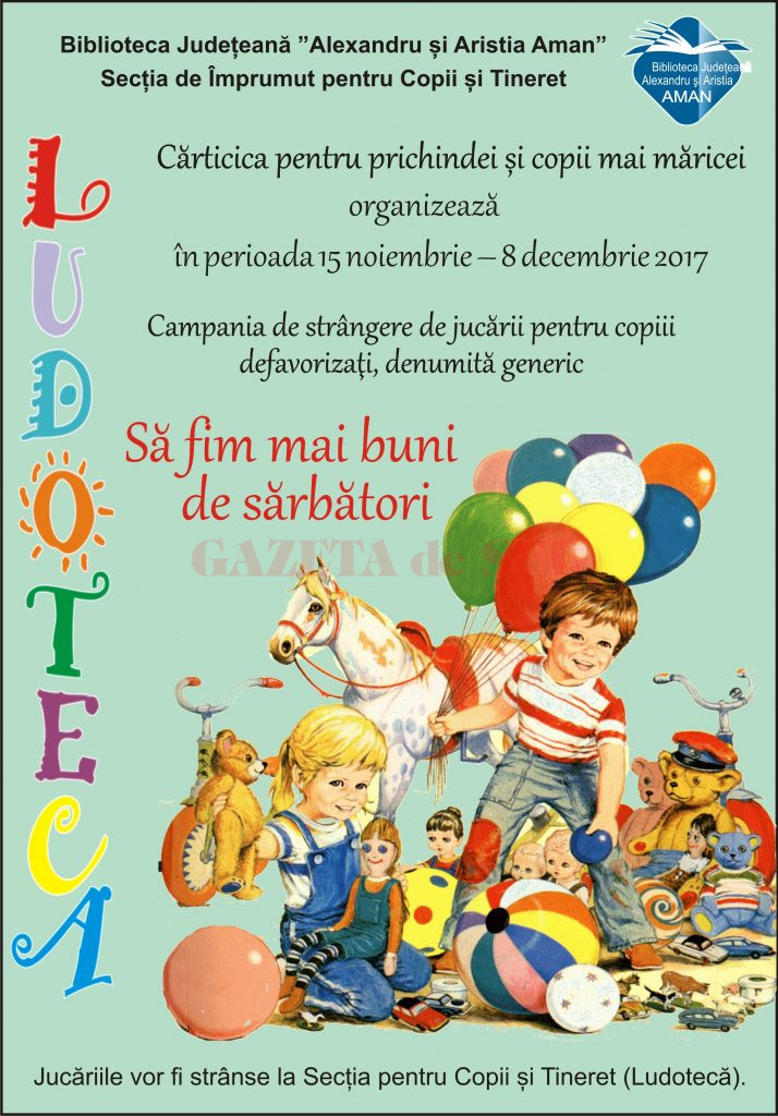 Biblioteca Județeană “Alexandru și Aristia Aman” va dona, marţi, 19 decembrie, către Școala Gimnazială Specială ,,Sf. Vasile” din Craiova, jucăriile colectate în cadrul campaniei „Să fim mai buni de sărbători”.