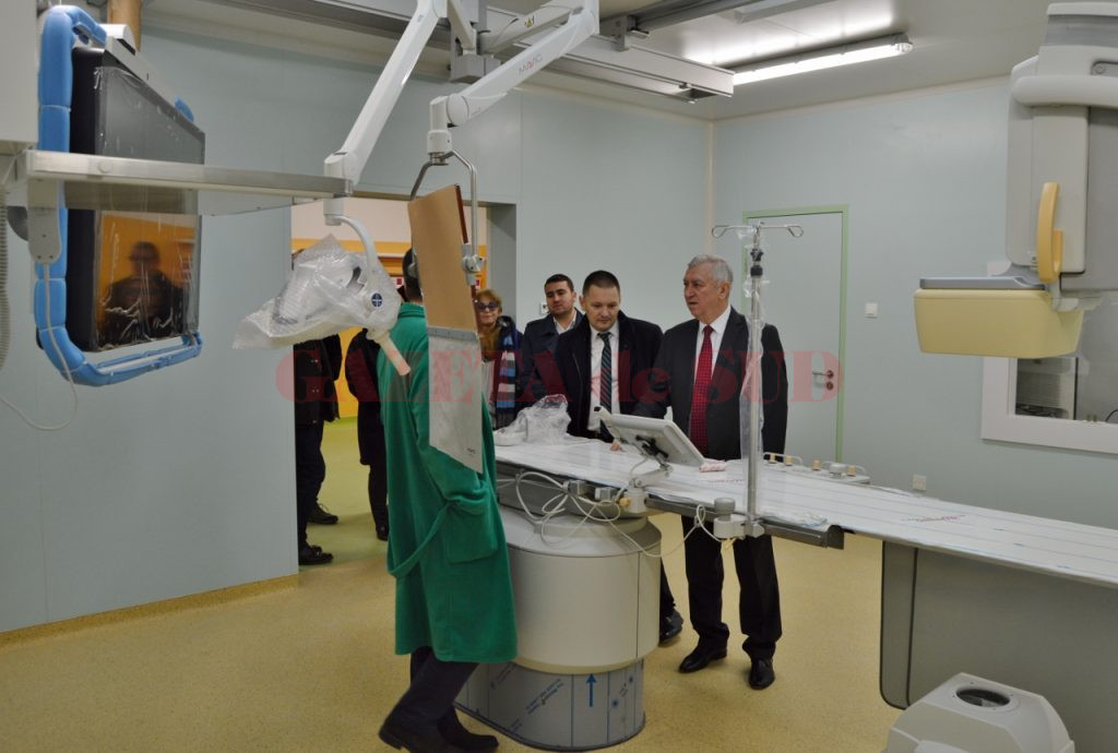În paralel, noi am continuat să depunem toate eforturile pentru ca această nouă structură să dispună de dotările necesare pentru a deveni funcțională în prima parte a anului viitor. Prin bugetul pentru 2017, am alocat Spitalului de Urgență aproximativ 2 milioane de euro pentru procurarea de aparatură medicală. Cea mai importantă componentă a acestui plan de achiziții derulate de către SCJU Craiova a reprezentat-o echipamentul pentru angiografie, care a fost deja instalat în Clinica de Cardiologie Intervențională și Chirurgie Cardiovasculară și este pregătit pentru primele teste.