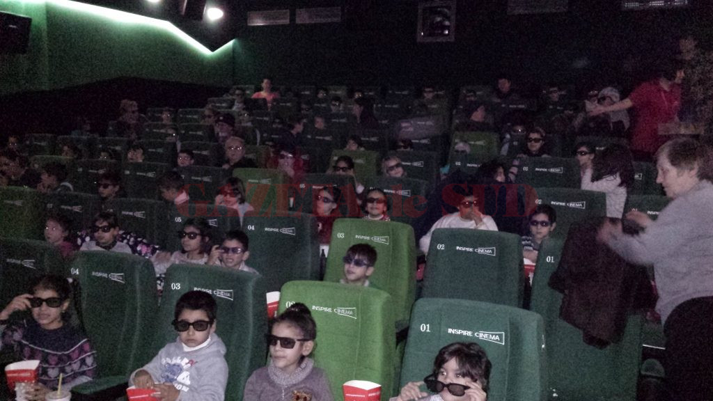 Cele 6 sălile de la Inspire Cinema, precum și o sală de la Colours Cinema au avut, ieri, ca oaspeți copii cu vârste între 5 și 17 ani, care au avut parte de proiecții de film speciale, și au primit fiecare din partea organizatorilor câte o cutie cu popcorn și un pahar cu suc.