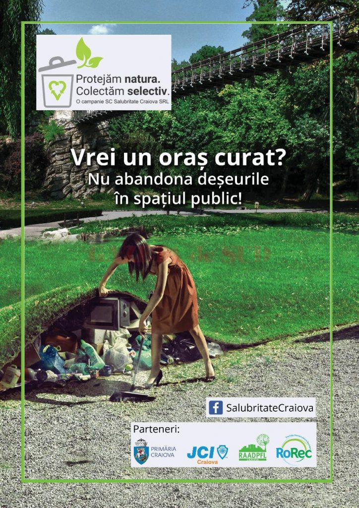 SC Salubritate Craiova SRL, în parteneriat cu Regia Autonomă de Administrare a Domeniului Public și Fondului Locativ (RAADPFL) Craiova, Asociația RoRec, Primăria Municipiului Craiova și Junior Chamber International (JCI) Craiova desfășoară, în perioada 22.01.2018-15.05.2018, proiectul „Vrei un oraș curat? Nu abandona deșeurile în spațiul public!”. Timp de aproape patru luni, cei 80 de voluntari ai campaniei vor distribui în centre comerciale din Craiova, în spații publice intens circulate (parcuri, zone de agrement, Centrul istoric al municipiului), precum și la unele asociații de proprietari, unde sunt depozitate frecvent deșeuri pe lângă recipientele de precolectare, broșuri în care se regăsesc informații referitoare la modalitatea corectă de precolectare a deșeurilor dar și reguli de conviețuire socială și amenzile prevăzute pentru încălcarea acestora.