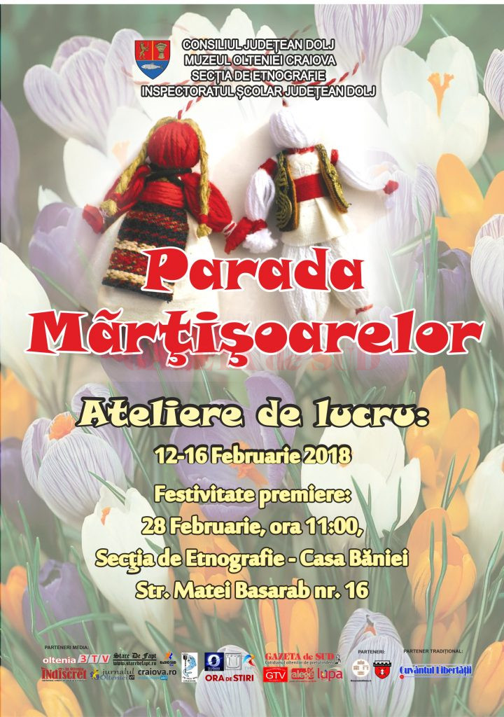 Muzeul Olteniei Craiova – Secția de Etnografie, în colaborare cu Inspectoratul Școlar Județean Dolj și cu sprijinul financiar al Consiliului Județean Dolj, organizează, în perioada 12-16 februarie, ateliere de creație pentru realizarea de mărțișoare tradiționale.