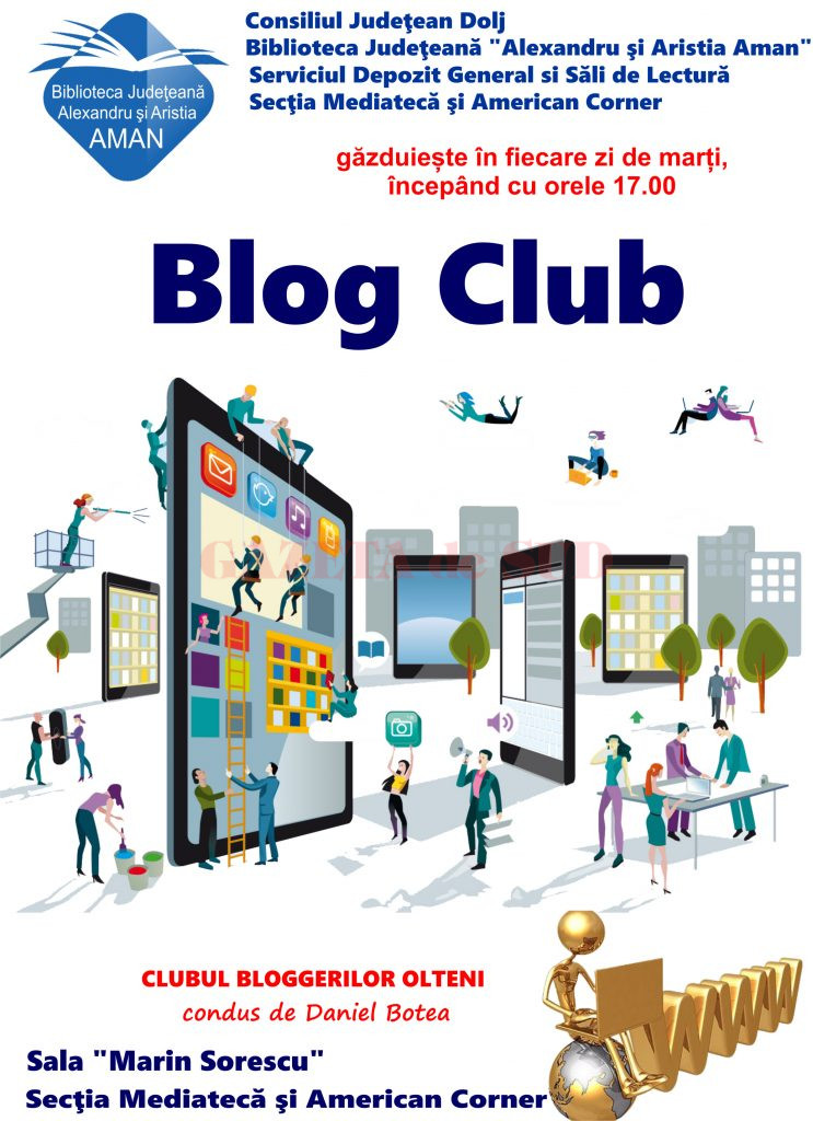 Biblioteca Județeană “Alexandru și Aristia Aman” găzduiește în fiecare zi de marți, începând cu orele 17:00, clubul bloggerilor olteni coordonat de Daniel Botea.