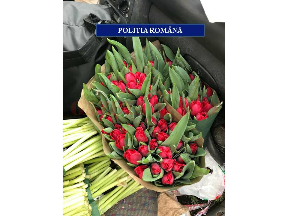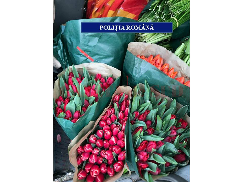 Valoarea mărfurilor confiscate este de peste 2.500 lei, reprezentând contravaloarea a peste 2.100 fire de flori.