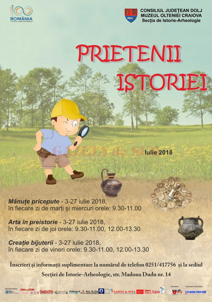 Muzeul Olteniei Craiova organizează, în perioada 3 – 27 iulie, ateliere de creație în spațiul interactiv din strada Madona Dudu, nr.14, în cadrul Secției de Istorie-Arheologie.