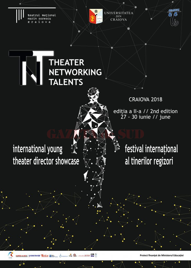 Teatrul Național „Marin Sorescu” din Craiova organizează, între 27 – 30 iunie, a doua ediție a Festivalului Internațional al Tinerilor Regizori THEATER NETWORKING TALENTS. La această ediție a festivalului sunt organizatori Departamentul de Arte al Universității din Craiova, Teatrul Național „Marin Sorescu” și Casa de Cultură „Traian Demetrescu” din Craiova. Festivalul TNT se va desfășura sub formă de competiție, devenind o importantă rampă de lansare pentru absolvenții specializării regie de teatru. Vor fi acordate următoarele premii: