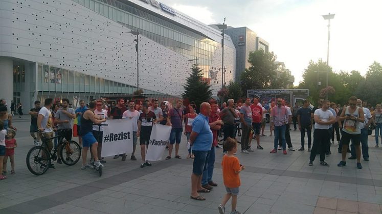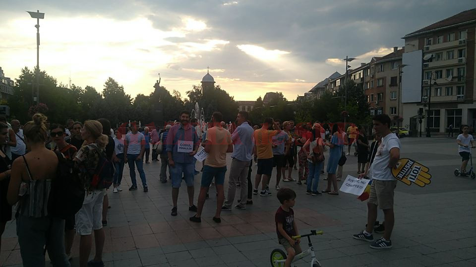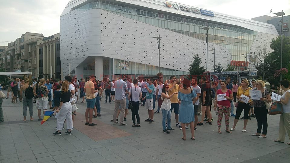 Peste 100 de persoane protestează în Piața Mihai Viteazul din Craiova.Oamenii au scandat lozinci precum: „PSD, ciuma roșie!””Dragnea nu uita/ România nu-i a ta!”.