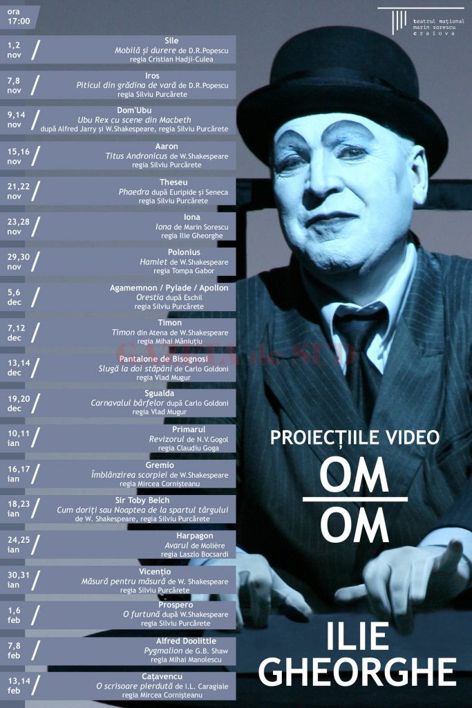 În cadrul instalației OMSUPRAOM, în perioada 1 noiembrie 2018 – 14 februarie 2019, la sala „Ia te uită” vor fi prezentate înregistrările video ale spectacolelor aflate de-a lungul timpului în repertoriul Teatrului Național Craiova, avându-l în distribuție pe Maestrul Ilie Gheorghe. Intrarea se face pe bază de rezervare la Agenția teatrală sau la nr.