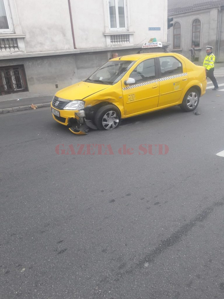 Un taximetrist a fost accident, în această după-amiază, în timpul unui accident rutier petrecut în Craiova. Potrivit poliţiştilor doljeni, un bărbat de 48 de ani, din Craiova, care conducea un autoturism pe strada Frații Buzești, nu a acordat prioritate unui taxi, condus de un bărbat de 65 de ani, din Craiova.