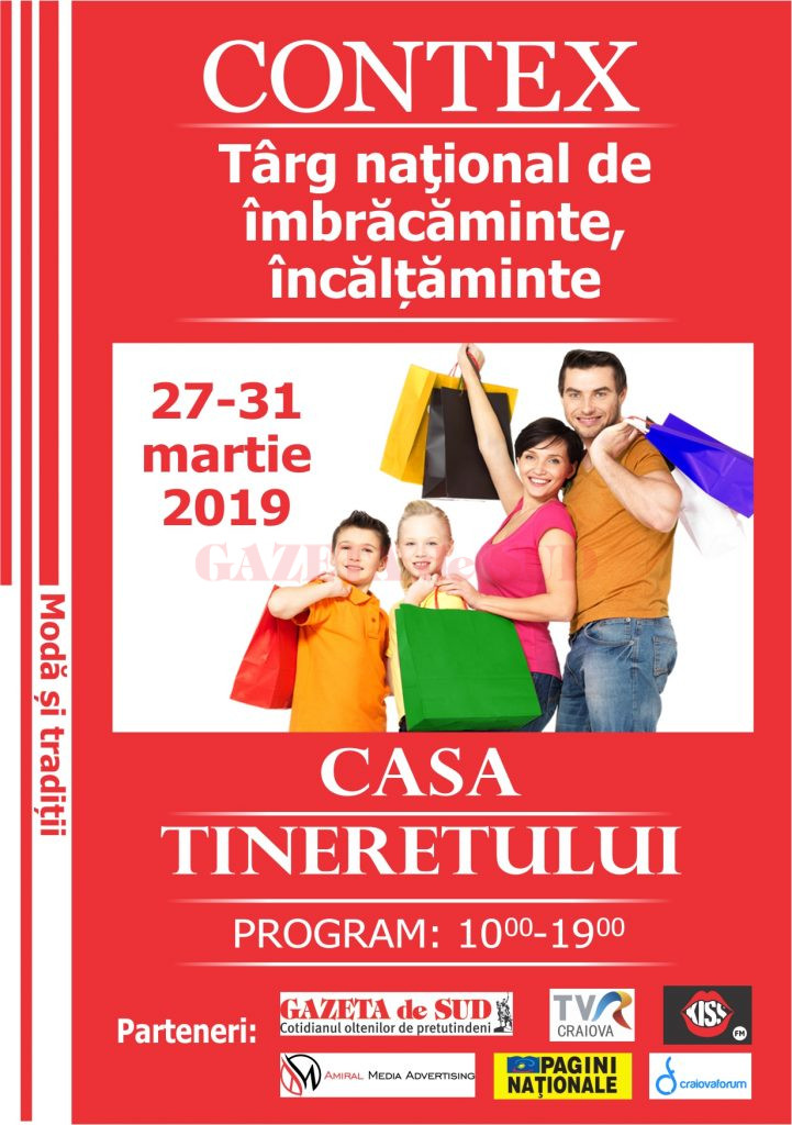 De 15 ani, producători din toată ţara îşi dau întâlnire la Craiova pentru a vă prezenta ultimele noutăţi vestimentare pentru toată familia! Începând de miercuri, 27 martie, orele 12.00 şi până duminică, 30 martie, orele 16.00, târgul CONTEX vă aşteaptă zilnic între orele 10.00 – 19.00 cu cele mai noi produse, la preţuri de producător pentru articole de îmbrăcăminte, încălţăminte, marochinărie, piele blană şi produse hand made.
