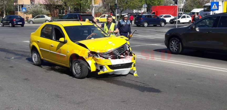 Un accident a avut loc pe bulevardul Dacia, la intersecţia cu Bariera Vâlcii. Din primele cercetări ale IPJ Dolj a reieşit că un taxi a intrat în coliziune cu un alt autoturism, iar în urma impactului, o pasageră din taxi a fost rănită.