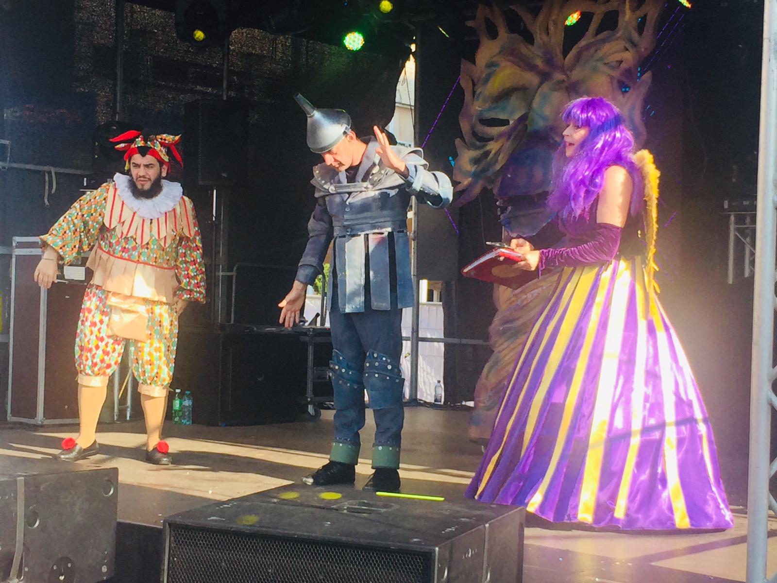Piesele de teatru pentru copiii au fost jucate pe scena amplasată din fața prefecturii.