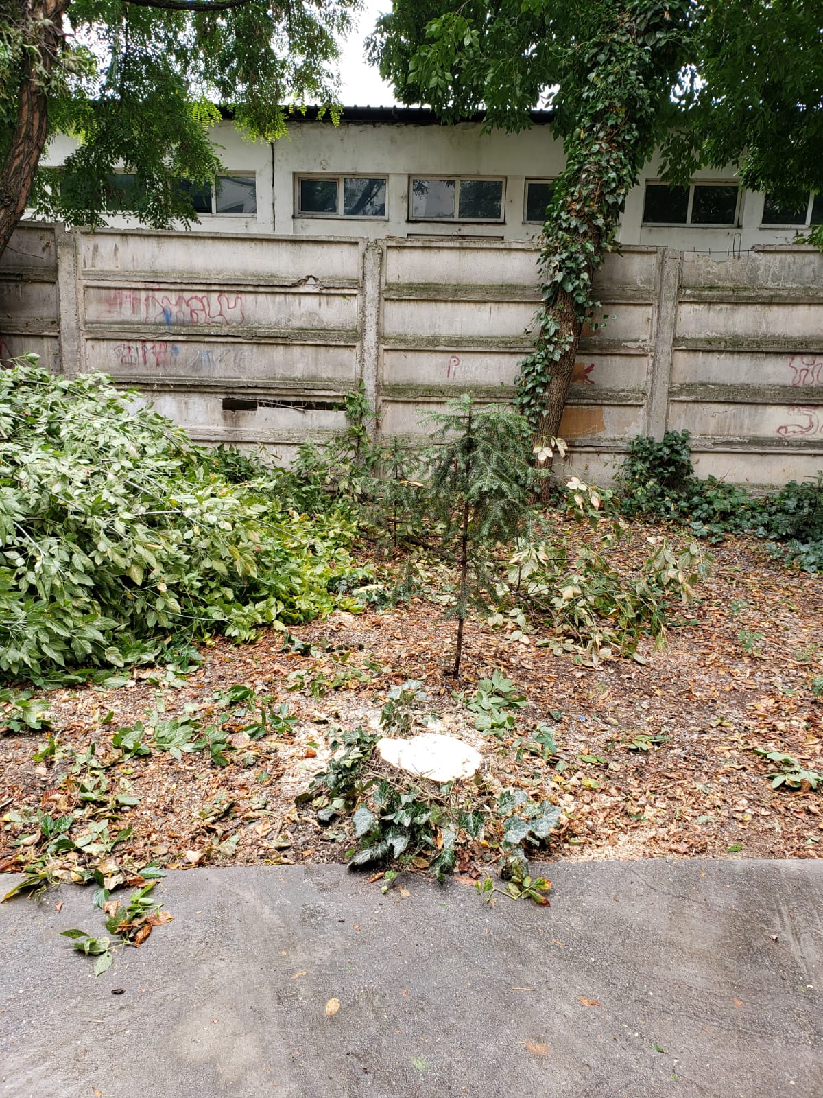 „Copacii din spatele blocului au fost toaletaţi de cei de la RAADPFL. Preşedintele nu a fost mulţumit probabil şi a chemat nişte romi, cu căruţe, cu drujbe şi au tăiat vreo 12 copaci. Nu am înţeles de ce a făcut asta. Proprietarii au chemat poliţia, fiindcă suntem siguri că este o faptă ilegală. A venit poliţia locală şi poliţiştii de la Secţia 3. I-a luat pe toţi la secţie. Au făcut măcel aici în zona verde a blocului. Am înţeles că preşedintele vrea să facă aici parcare, dar nu cred că a procedat bine. Erau copaci înalţi cât blocul şi i-au pus la pământ. Nu ne-a întrebat nimeni. Nu se poate aşa ceva. La asociaţie figurează că sunt în concediu, cel puţin aşa este scris pe afişul de la sediu. Noi, proprietarii suntem uluiţi, cum să tai toţi copacii din spaţiul verde al blocului? Nu a avut acordul nostru. I-a adus pe oamenii ăia cu drujbele şi a culcat copacii la pământ. Este ilegal ce a făcut. Acum, am înţeles că dau declaraţii la poliţie”, spune Claudiu Vava, proprietar.