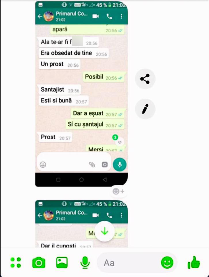Iată mai jos extrase din presupusa conversaţie purtată de primar pe Whatsapp, cu tot cu greşelile gramaticale: