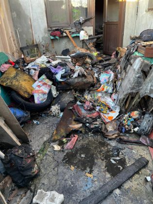 Casa celor trei, care este situată pe strada Brestei din Craiova, nu mai este locuibilă. Acoperişul a ars complet, iar din cauza apei cu care pompierii au stins focul, tavanele aproape au căzut. Cele două cămăruţe sunt distruse, iar familia a adunat ce le-a mai rămas pe holul casei. Resturile arse sunt în curte. Acum nici nu se mai poate intra în camere pentru că există riscul ca tavanele să cadă în orice moment. Mâinile celor trei sunt pline de funingine, după ce au adunat din cenuşă diferite obiecte şi au încercat să pună deoparte ce se mai poate folosi. În afară de haine şi alte câteva obiecte mărunte nu mai au nimic.
