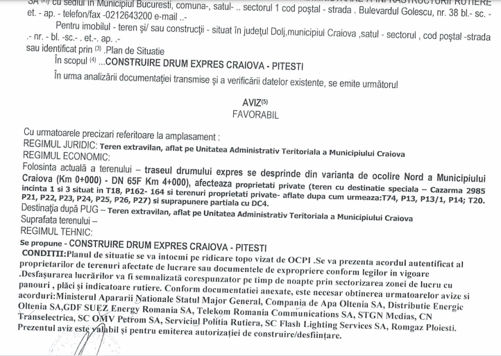 După numeroase sesizări către autorităţi, cetăţenii care locuiesc în zona respectivă au obţinut avizul dat de Primăria Craiova pentru construirea Drumului Expres Craiova Piteşti, segmentul de pe teritoriul oraşului nostru. Nu mare le-a fost mirarea când au citit avizul şi şi-au dat seama că Primăria Craiova, condusă la vremea respectivă de Mihail Genoiu, nu a solicitat nicio soluţie pentru ca ei să aibă acces spre Craiova.