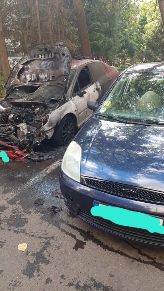 Două autoturisme au fost curpinse de flăcări într-o parcare din zona Cinematografului Patria din Craiova.