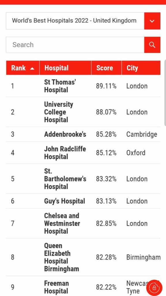 Roxana Hotoboc, medic de urgenţă și fosta șefă a Serviciului de Ambulanță Județean Gorj, a declarat că Spitalul „St. Thomas”, din Londra, ocupă prima poziție în topul celor mai bune spitale din Marea Britanie în 2022.
