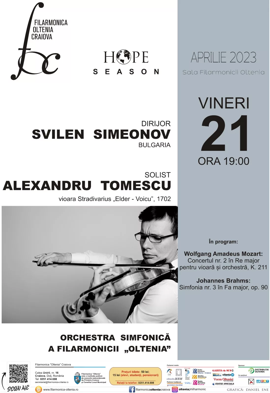 Filarmonica Oltenia prezintă, vineri, ora 19.00, un concert Mozart, cu Alexandru Tomescu și vioara Stradivarius.
