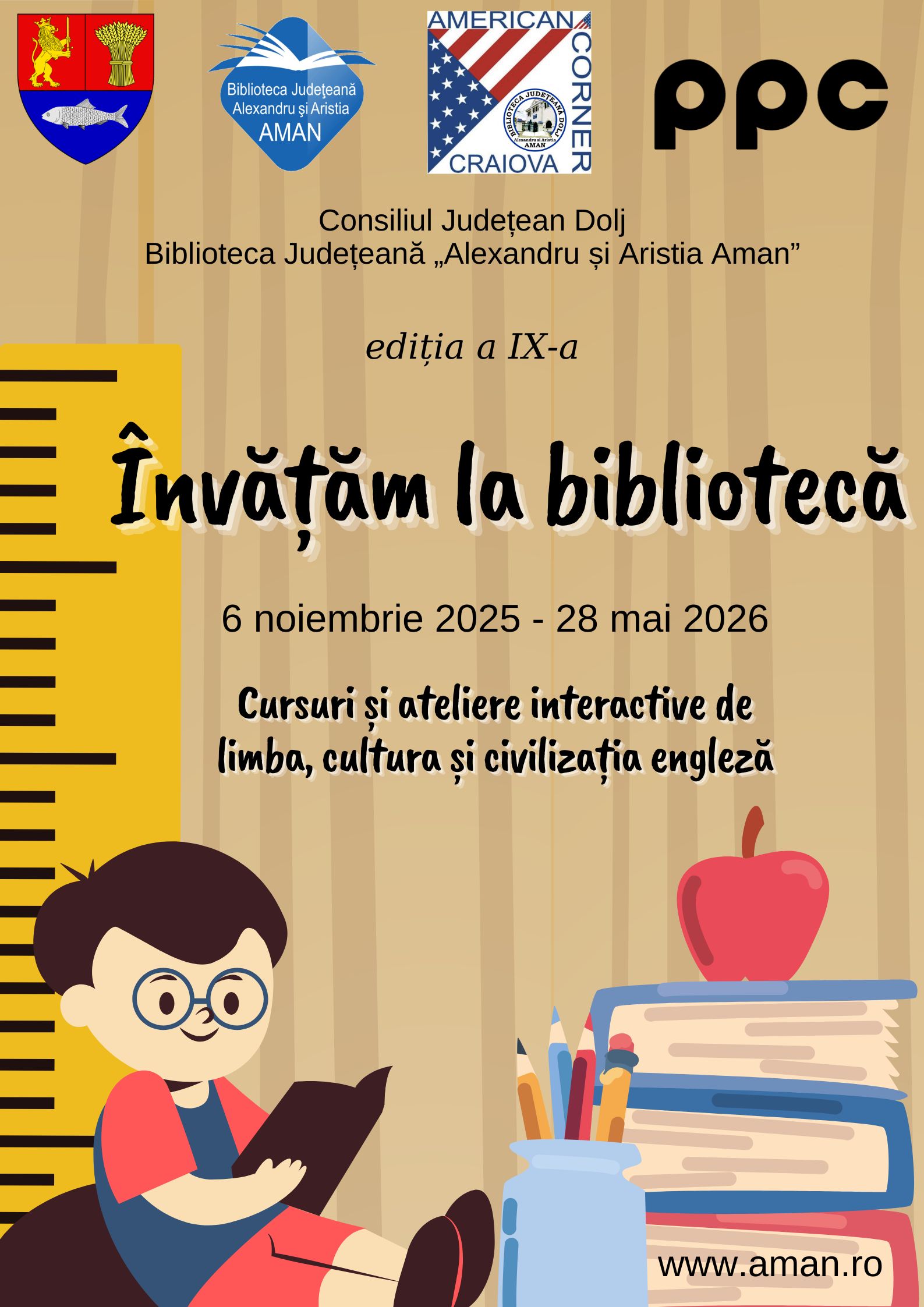 Astfel, în intervalul 6 noiembrie 2025 – 28 mai 2026, la secția Mediatecă și American Corner Craiova se vor desfășura săptămânal cursuri și ateliere interactive pe marginea noțiunilor de limbă, cultură și civilizație engleză, dedicate elevilor din clasele a III-a și a IV-a.
