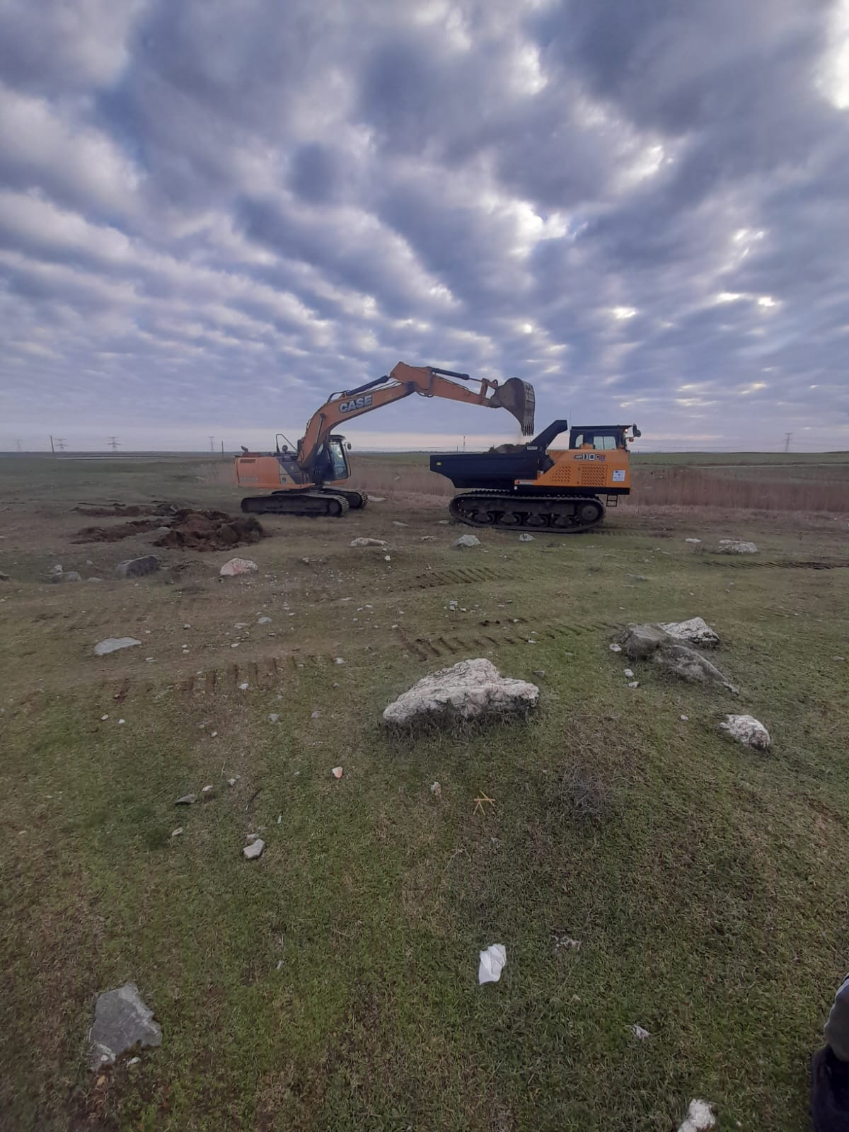 Din cauza excesului de umiditate din sol și a accesului dificil, intervenția se desfășoară exclusiv cu utilaje șenilate — excavator și buldozer.