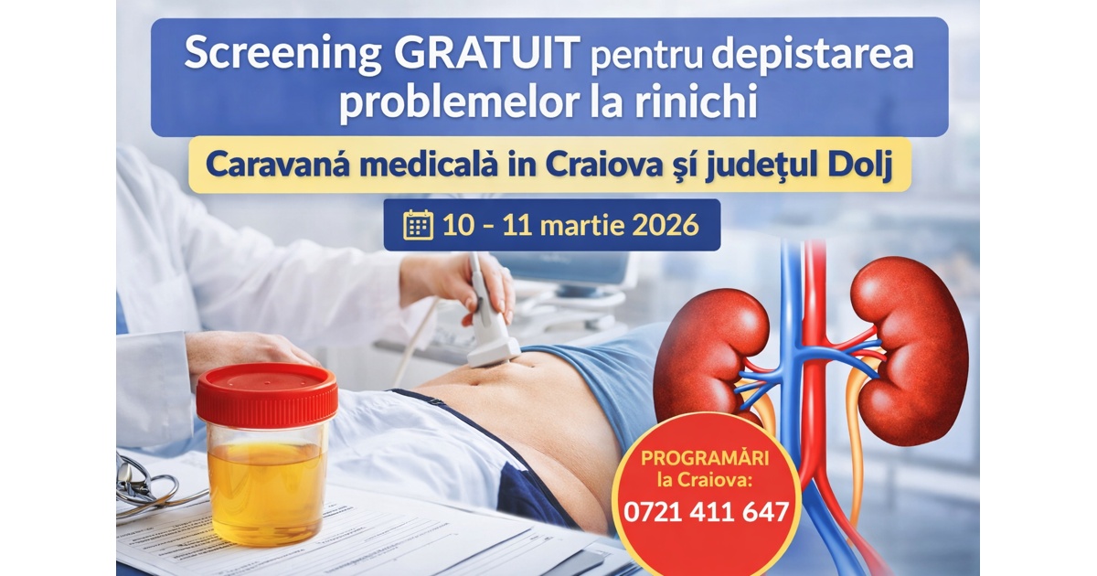 Înscrierea la Caravana screening pentru litiaza renală Craiova se face la numărul 0724. 411.647
