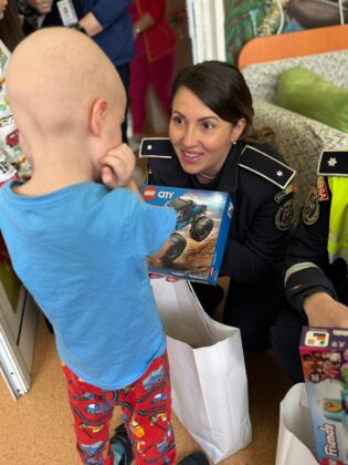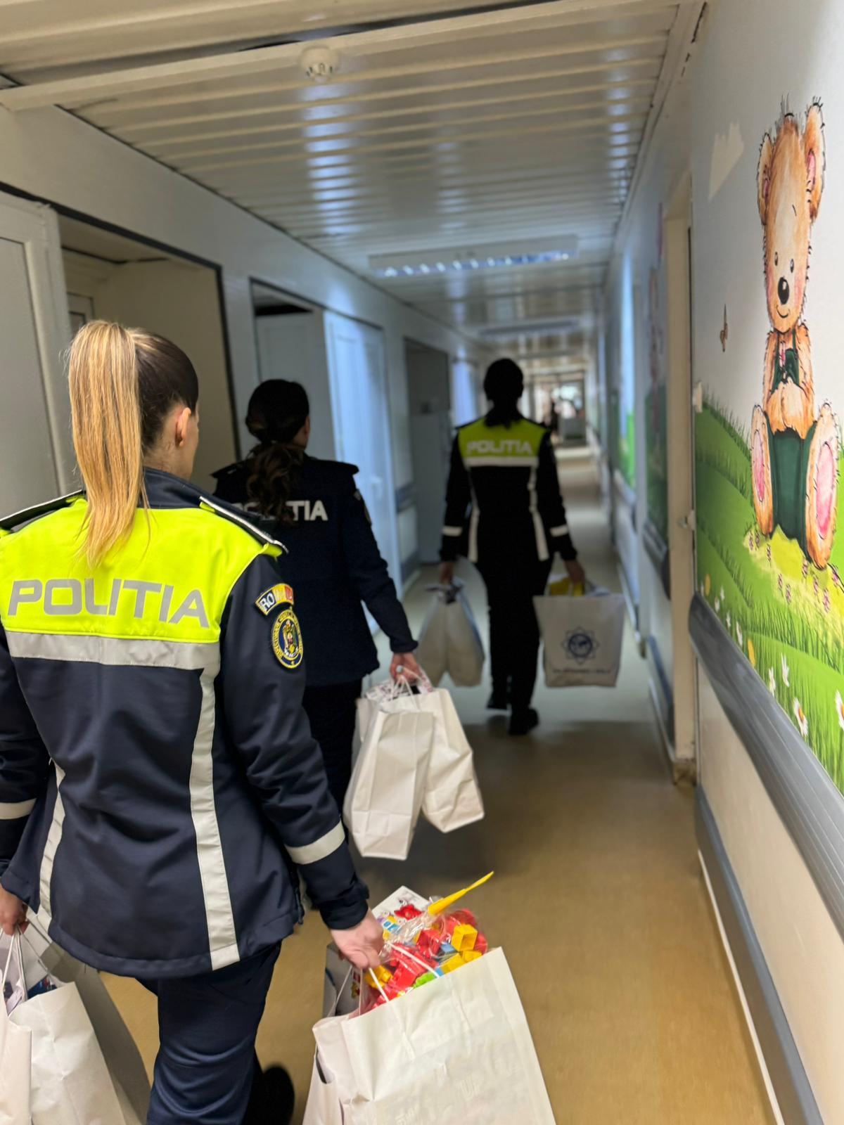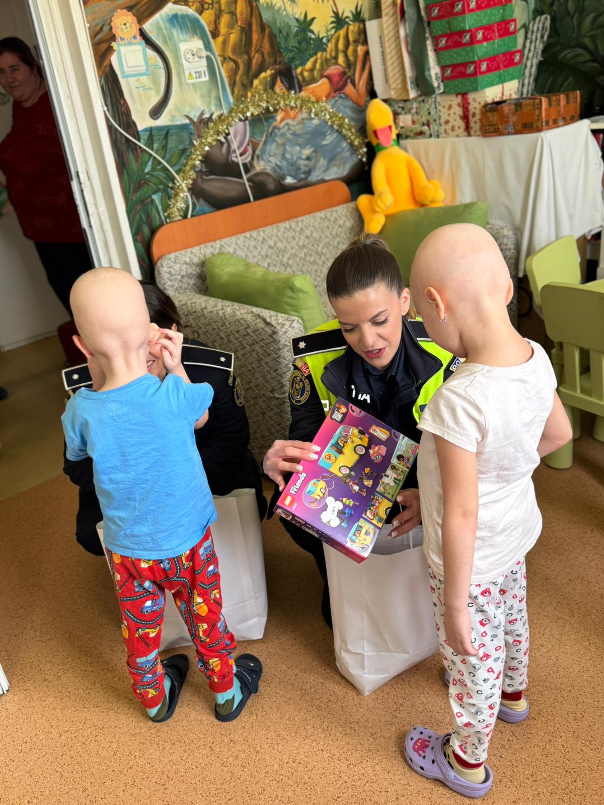Astăzi, polițiștii doljeni au fost alături de copiii internați în Secția de Oncopediatrie a Spitalului Clinic Județean de Urgență Craiova. Oamenii legii au adus un strop de bucurie și speranță în viețile celor mici.
