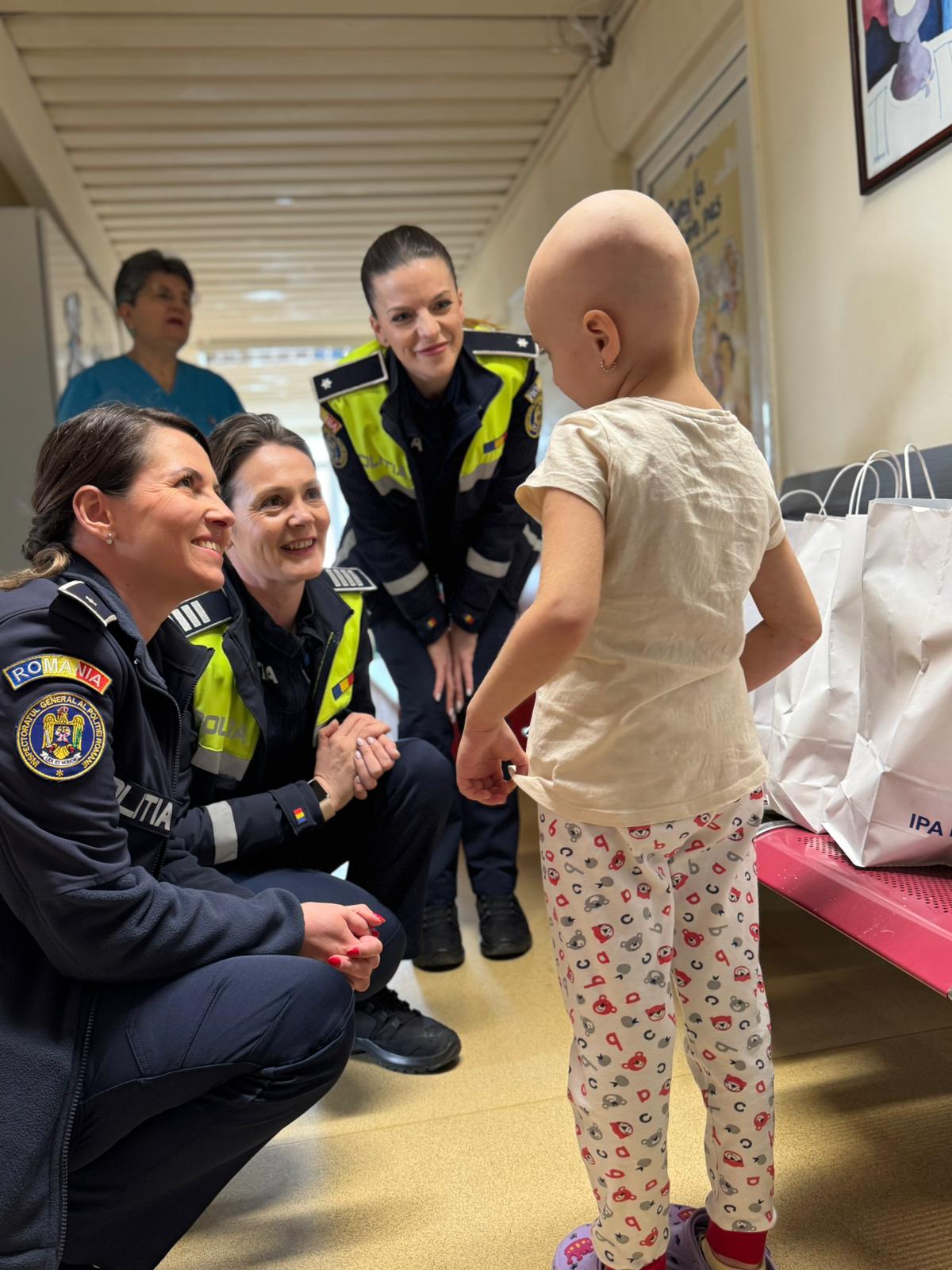 Au fost oferite daruri simbolice și gânduri bune, încurajare și susținere pentru micuții luptători. Polițiștii sunt alături de comunitate și în momentele în care sprijinul uman contează cel mai mult.