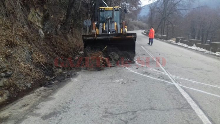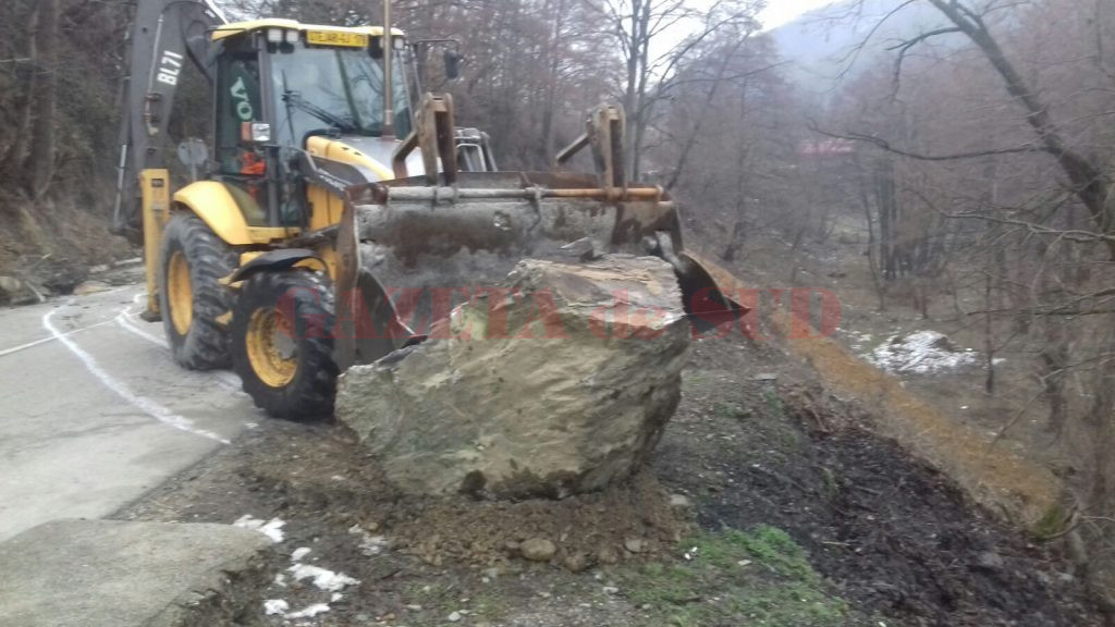 Secţia de Drumuri Naţionale Târgu Jiu intervine în zona Godeanu unde mai multe stânci au ajuns pe carosabil. este folosit un utilaj cu lamă pentru a îndepărta stâncile de pe carosabil. Stâncile se desprind de pe versant, din cauza fenomenului îngheţ-dezgheţ. Căderi de stânci au fost înregistrate recent şi în Defileul Jiului.