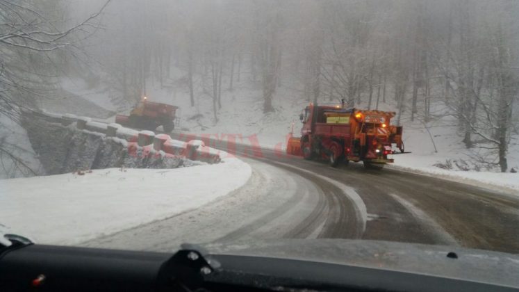 Secţia de Drumuri Naţionale intervine la această oră cu utilaje în mai multe zone unde carosabilul este acoperit cu zăpadă. Se înregistrează zăpadă de 2 -3 centimetri la Rânca şi Godeanu. Utilaje de deszăpezire intervin şi pe Bujorăscu şi în Defileul Jiului. În rest se circulă în condiţii în condiţii de carosabil curat şi umed. În total, în ultimele ore s-a acţionat cu 40 de utilaje şi au fost folosite câteva zeci de tone de material antiderapant.