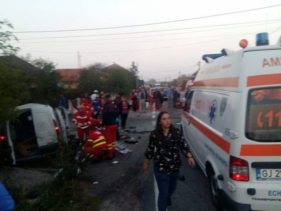 UPDATE: Șoferul de 42 de ani, din Târgu Jiu, este anchetat pentru vătămare corporală din culpă. El, alături de un bărbat de 62 de ani din Mătăsari și alt bărbat de 39 de ani din Florești, Mehedinți sunt răniți grav și se află la spital. Restul persoanelor sunt rănite ușor, unele cu atac de panică. Niciun copil nu se află printre victime.