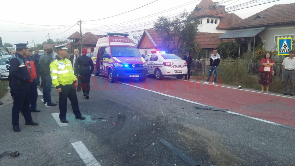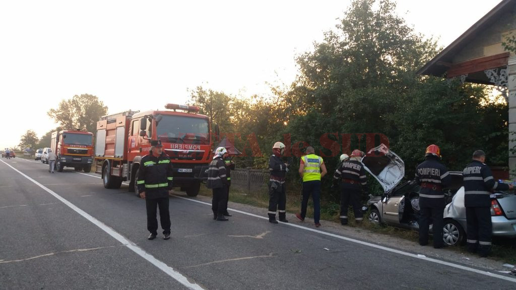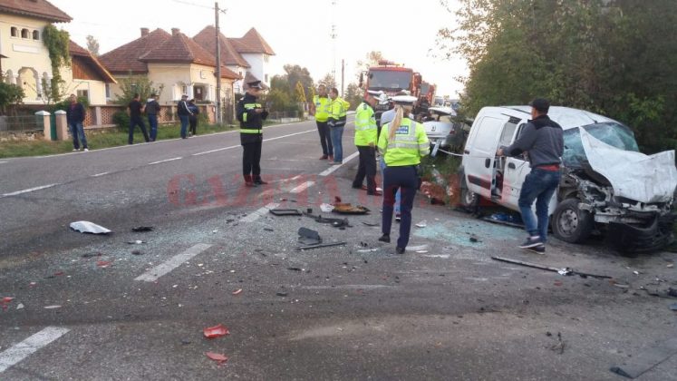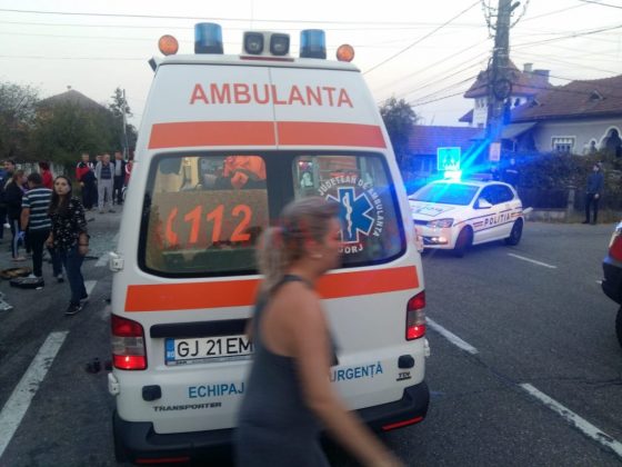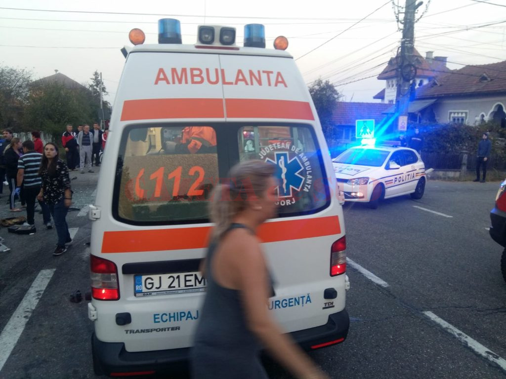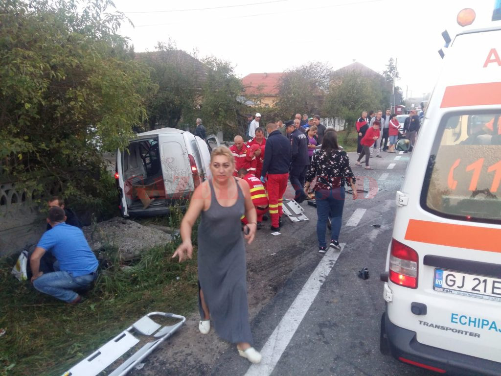 UPDATE: Cauza accidentului a fost neacordarea de prioritate, la intersecția unui drum comunal cu DN 67. Autoturismul Dacia Doker a pătruns în DN 67 fără să se asigure, intrând în coliziune cu alte două autoturisme care se deplasau dinspre Motru spre Târgu Jiu. Șoferului care se face vinovat de producerea accidentului i-a fost reținut permisul de conducere. În cauză polițiștii au intocmit dosar penal pt vătămare corporală din culpă.