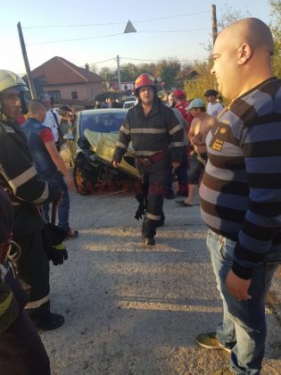 ISU Gorj a fost solicitat sa intervină şi a trimis la faţa locului echipaje din cadrul Detaşamentului de Pompieri Târgu Jiu care au constatat că nu sunt victime. Se intervine pentru degajarea autoturismului de pe calea ferată, astfel încât trenul să continue deplasarea.