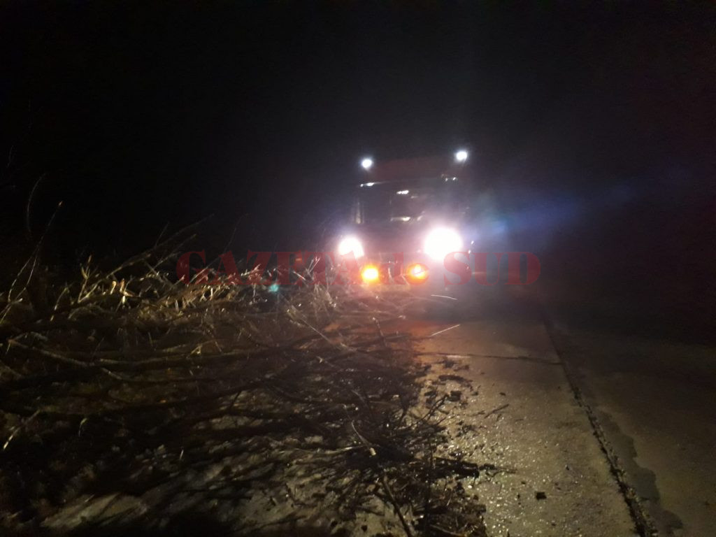 Mai mulți arbori au fost doborâți de vântul puternic pe drumul național ce traversează orașul Cărbuneşti. În zonă intervine un utilaj de la Secția de Drumuri Naționale Târgu Jiu.