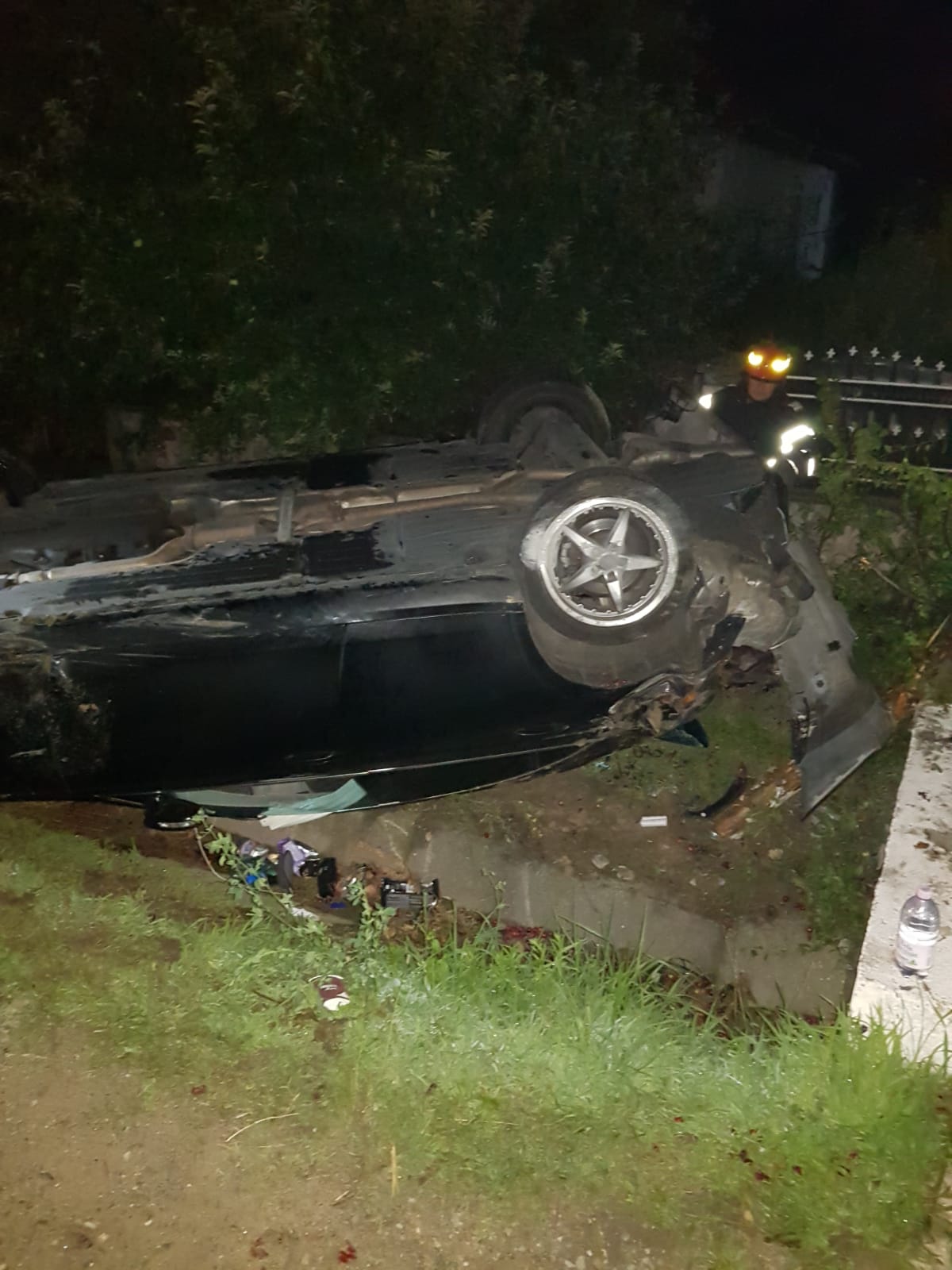 Un tânăr, de 18 ani, s-a răsturnat cu mașina azi-noapte la Plopșoru, satul Olari, Gorj.